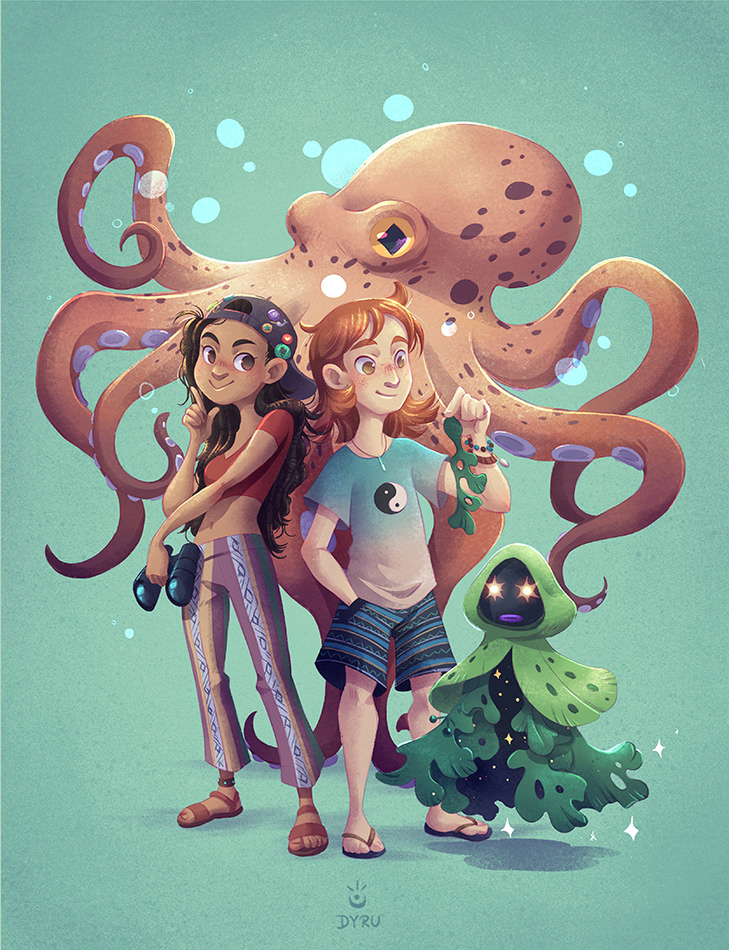 Was really fun to do this little private commission for kristhedirector - He has a little cute story about two adventures teenagers, an octopus and a mysterious seaweed magician. π©πΎβπ€βπ¨πΌππΏπ