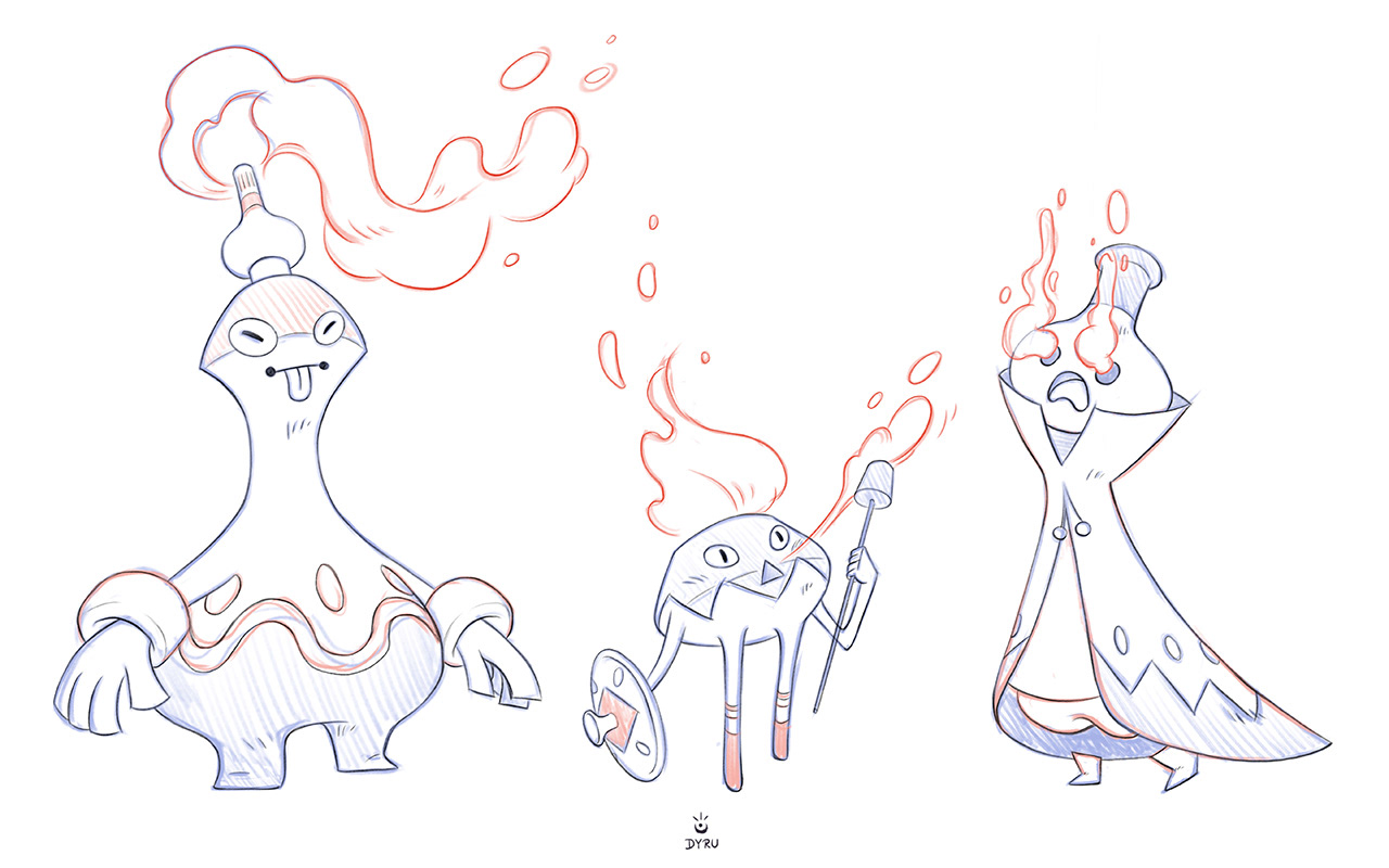 Some character designs I made during and after a workshop of the great Dani Diez! I tried a kind of 3D renderig here - really nice and maybe will do it more often now. The prompts where: cursed - pot - fire