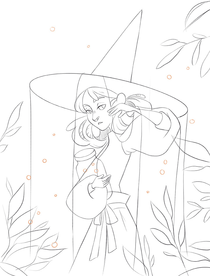 Felt like drawing something calm and magical so this friendly firefly witch came up. She collects fireflies for magic portions that help people who are afraid of the dark.