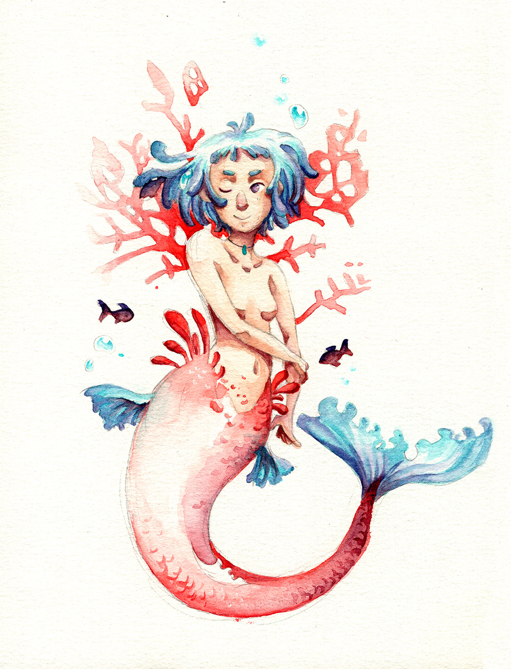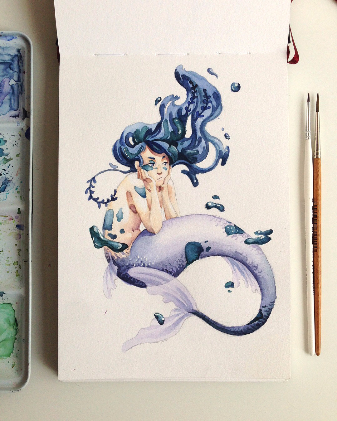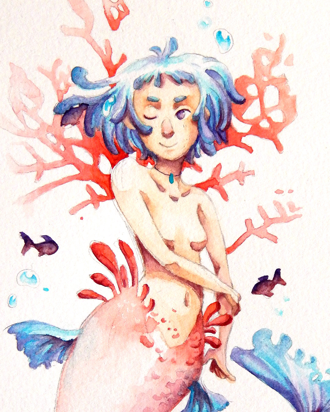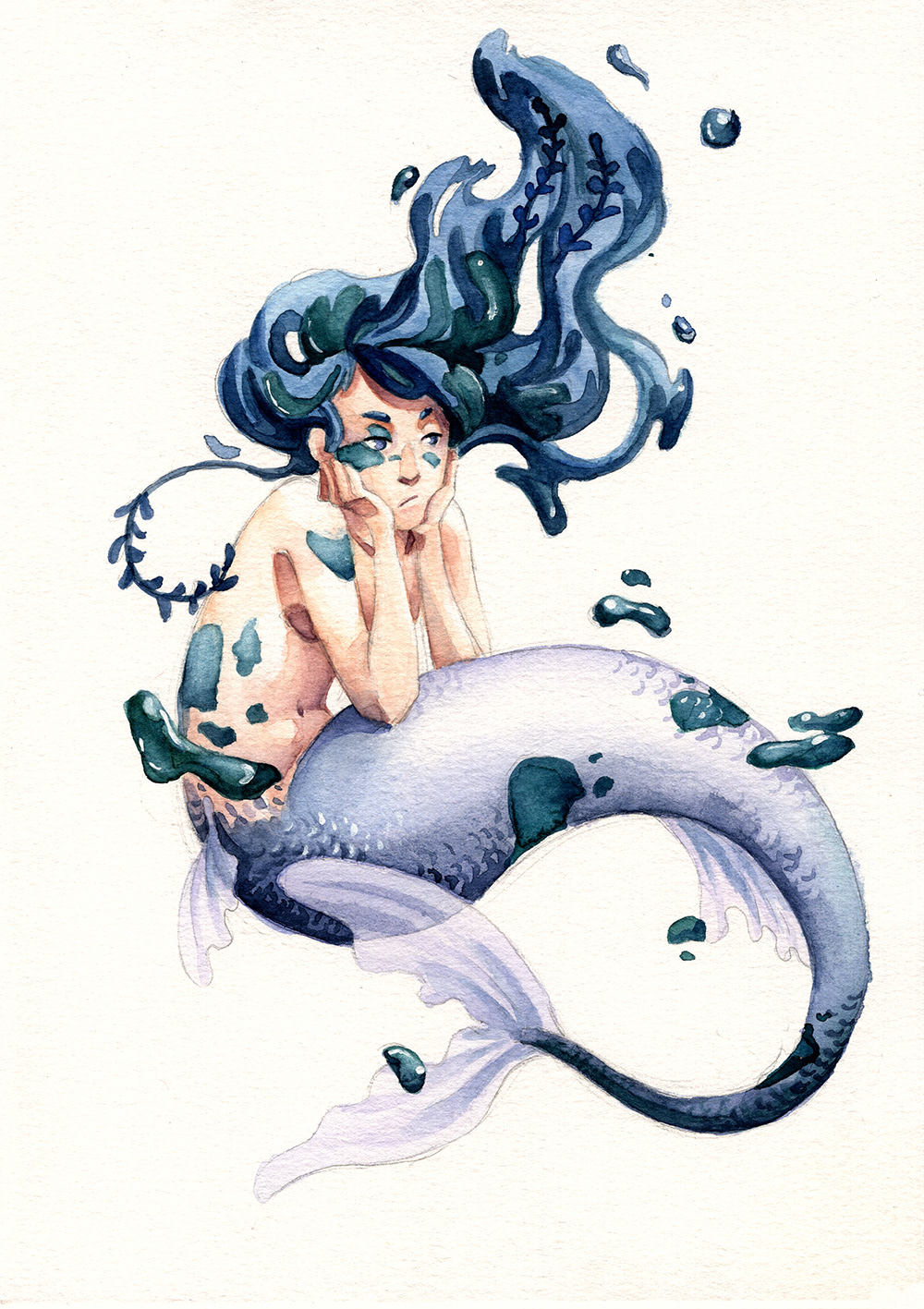 A little illustration collection of my mermaids from the mermay challenge 2018 - The purpose is to draw all days (or at least once a week) a mermaid. Made with traditional watercolors and paper.