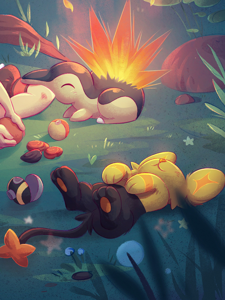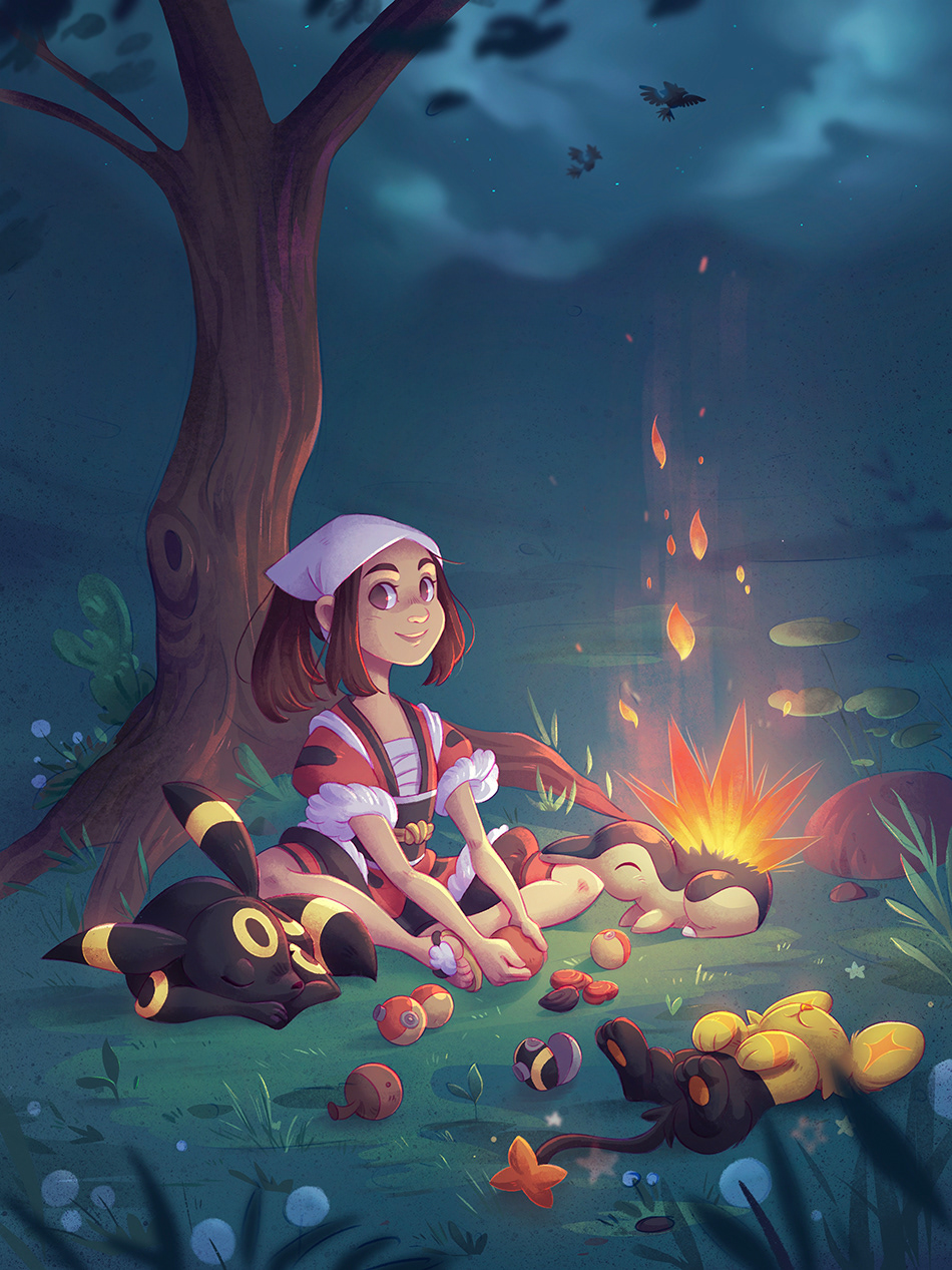 Little cyndaquil campfire in between the explorations. 🔥🎒 Really liked the new Pokemon with open world flair. So here is a little tribute illustration to my 3 favorites of my team.
