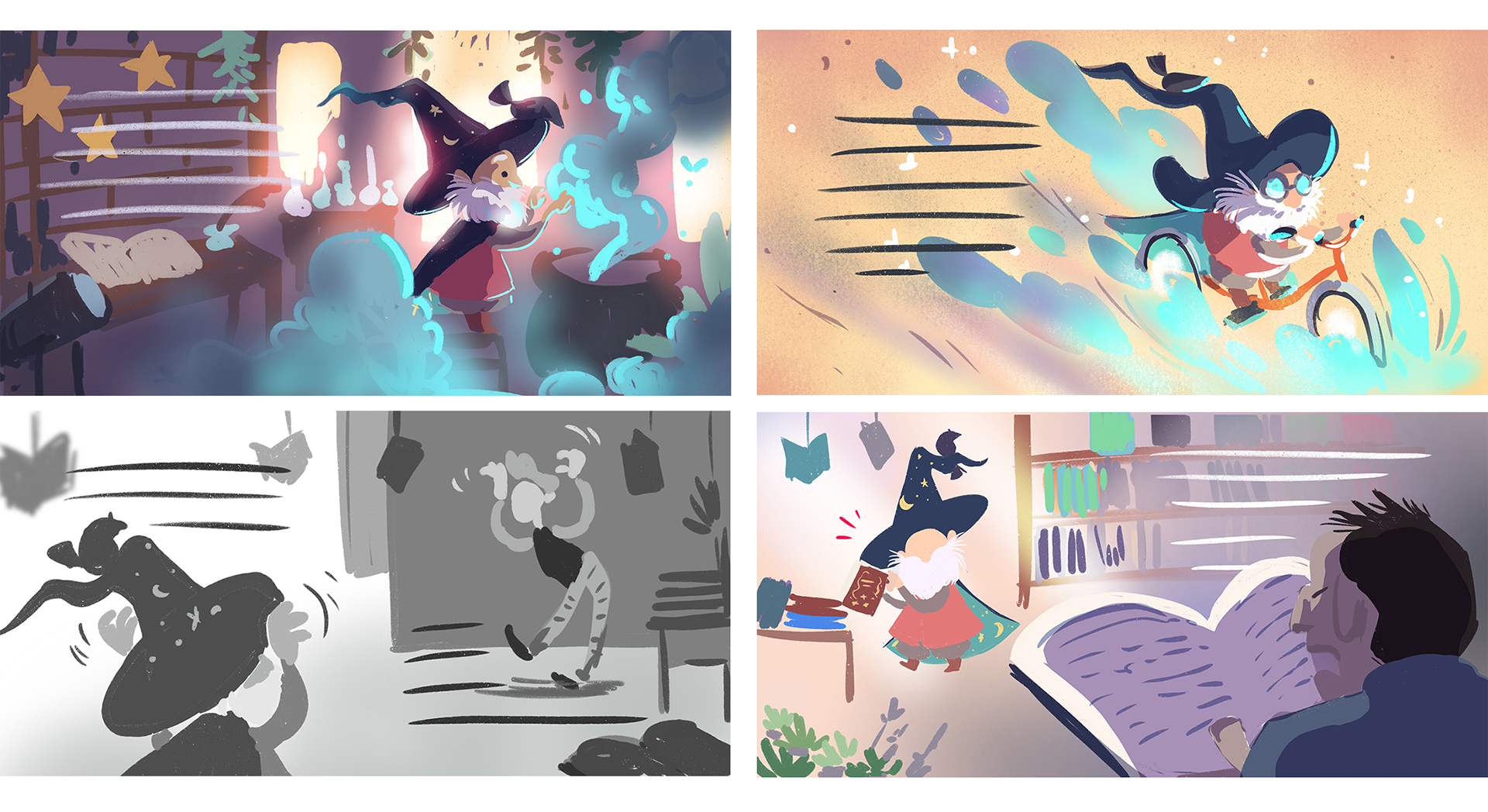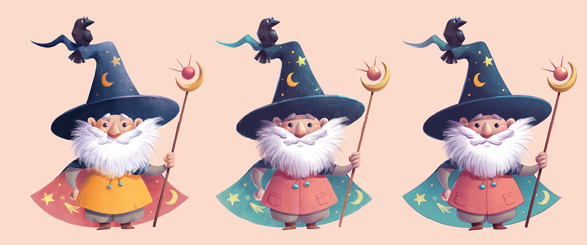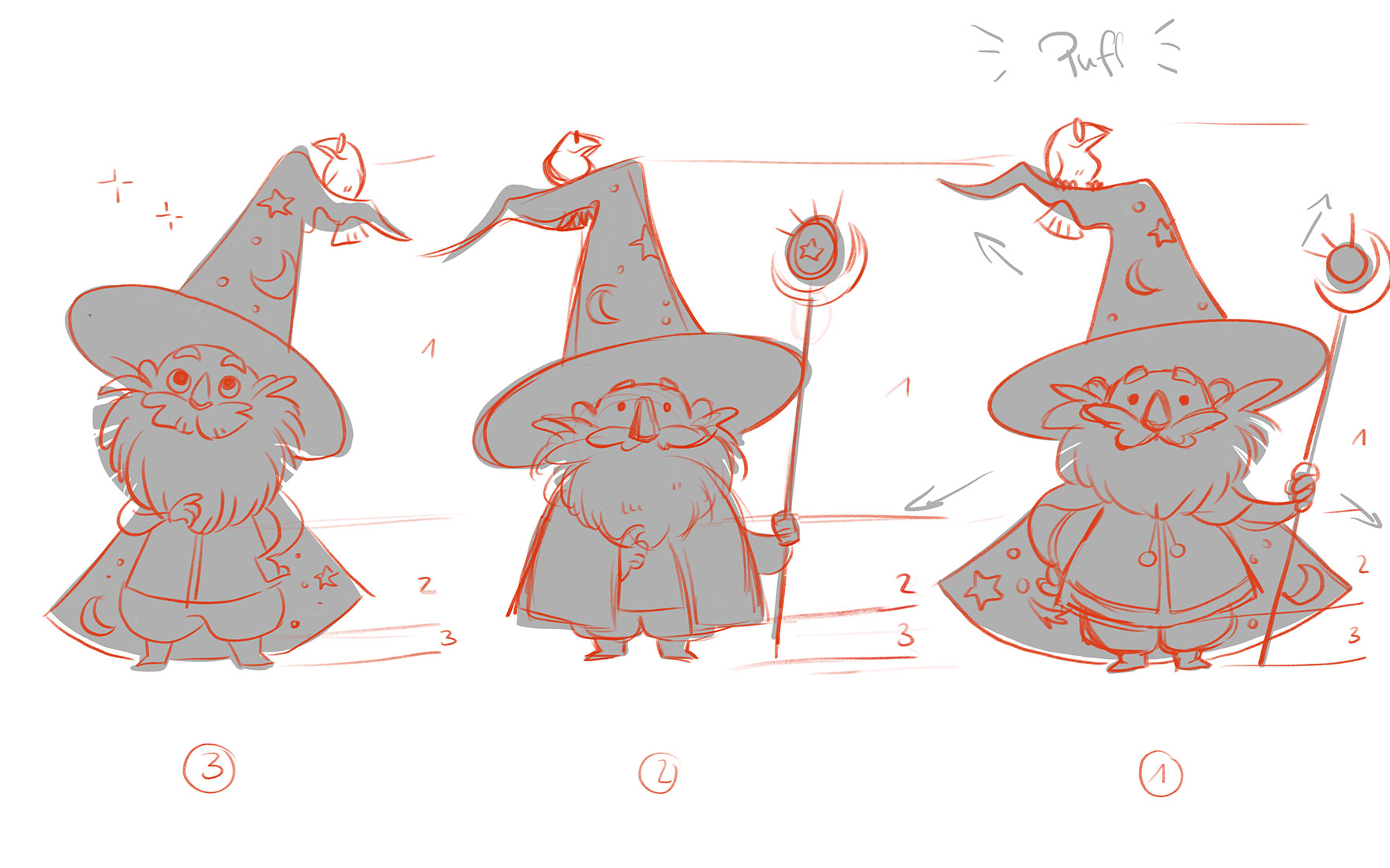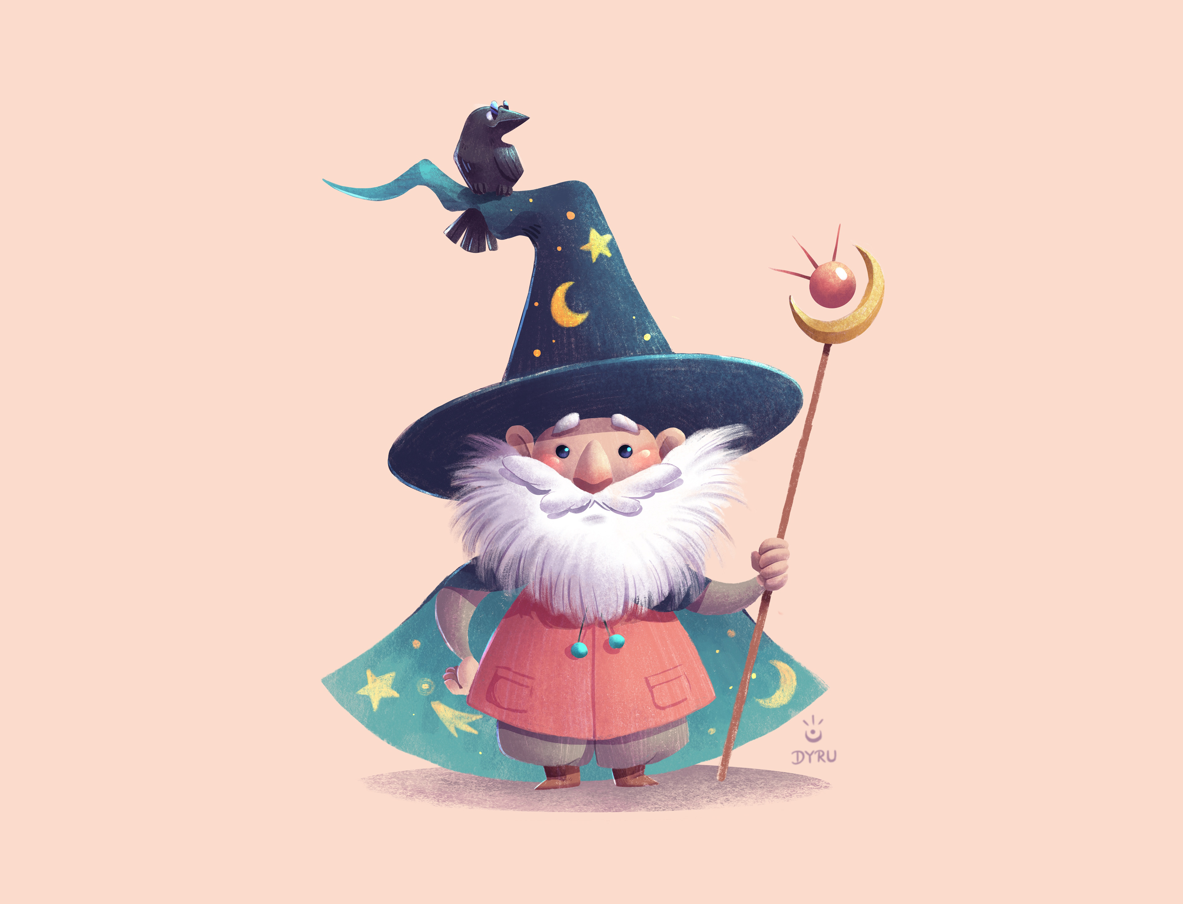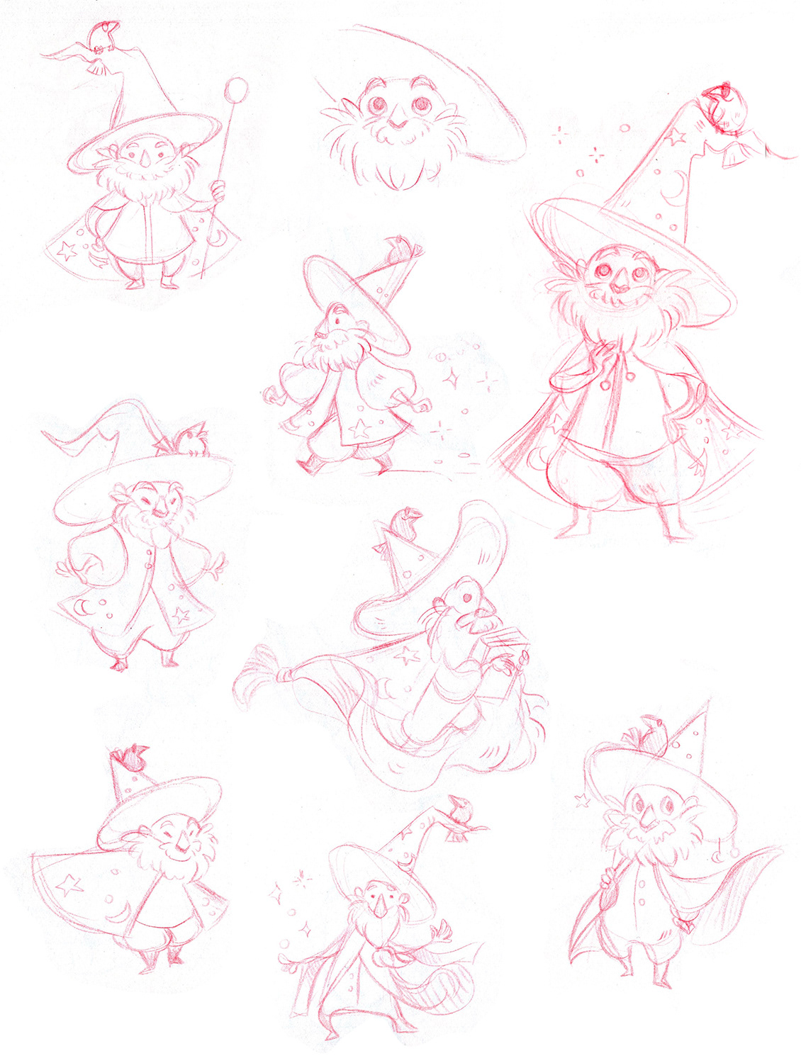 Little character exploration for a private children's book project with Dirk Lakomy. A story of a quirky wizard named "Schnaruffelpuff" and his best friend and helper "Knack" the smart crow.